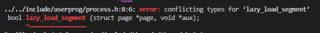 Project3. Virtual Memory에서 mmap을 구현하던 중 헤더 참조의 문제로 추정되는 에러가 발생했습니다.