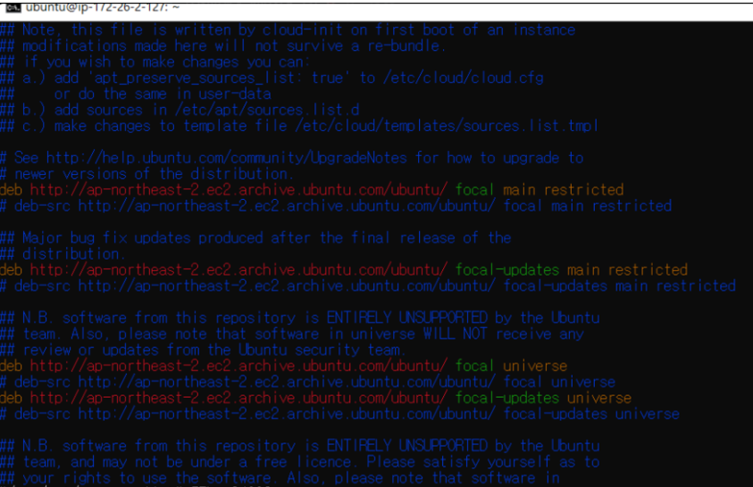 이유) 기본 서버가 *.ubuntu.com 해외 서버이기에, 국내망 이용할 수 있는 카카오 미러 서버를 사용합니다.