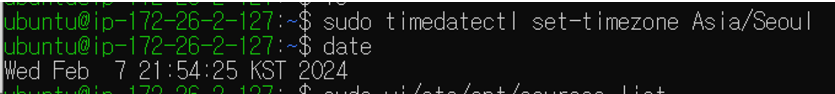 sudo timedatectl set-timezone Asia/Seoul // 변경