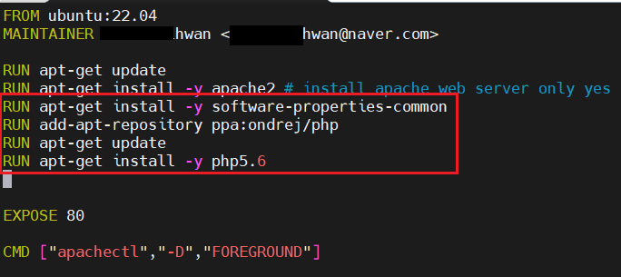 PHP(버전 5.6)도 설치하기위해 도커파일 수정