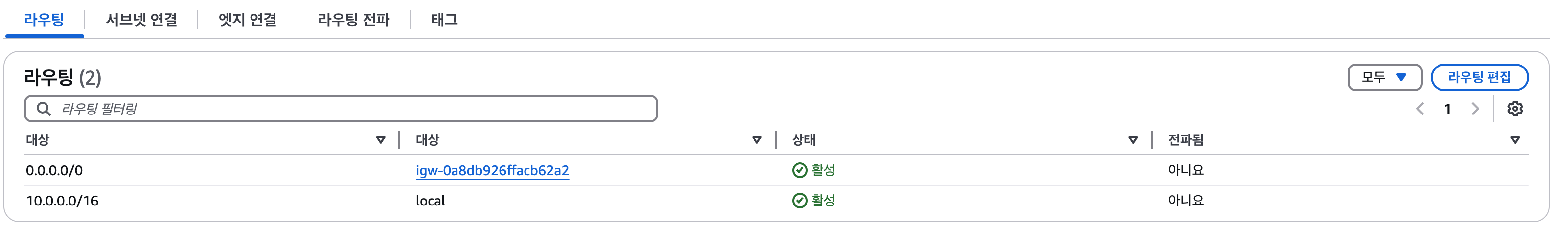 인터넷 게이트웨이를 사용하도록 라우팅 테이블(Route Table)을 수정합니다.