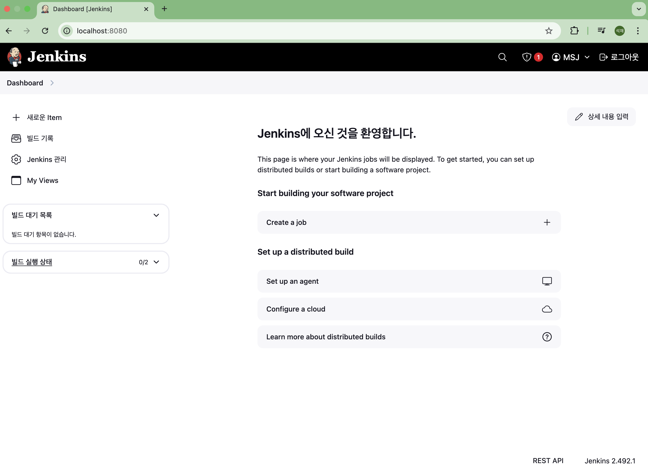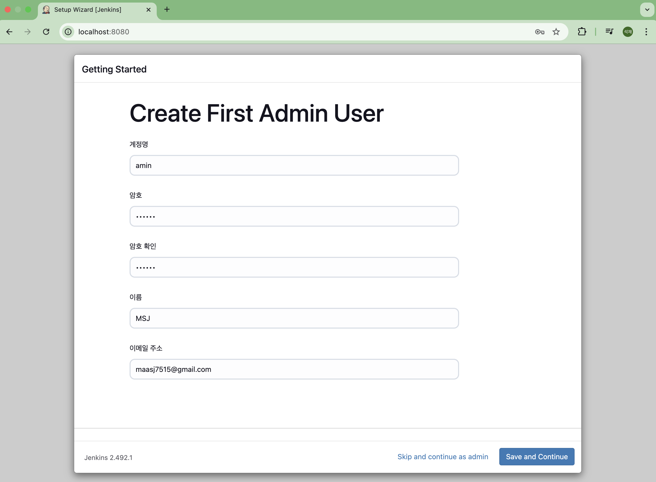 ๊ด๋ฆฌ์ ๊ณ์ ์์ฑ ํ Jenkins ์ค์ ์๋ฃ