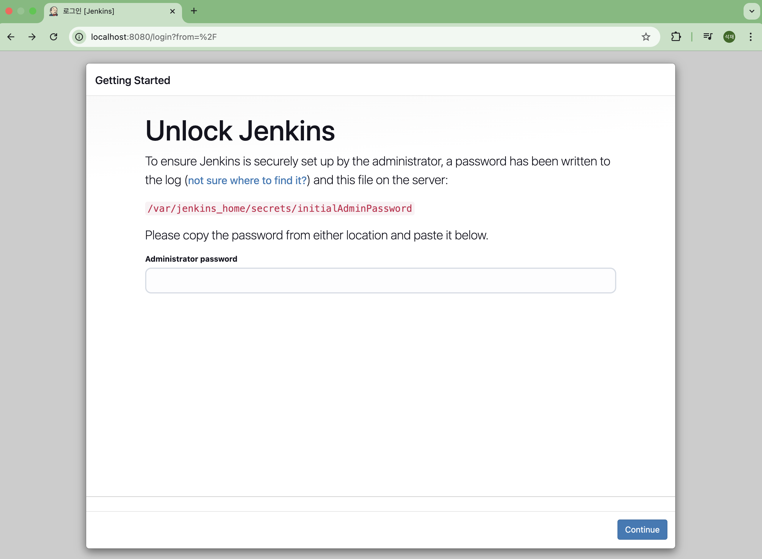 installation: ๋ฐ๋ก ์๋ ์๋ ๋ฌธ์์ด์ ๋ณต์ฌํ ํ ๋ธ๋ผ์ฐ์ ์์ Jenkins์ ๋ก๊ทธ์ธํ์ธ์.