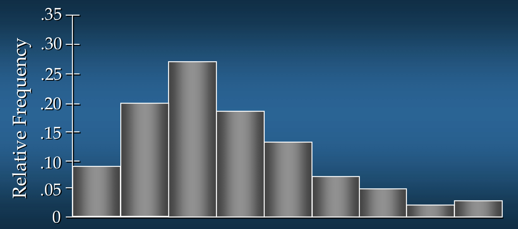 종모양이 오른쪽으로 길게 늘어진 분포(Moderately Right Skewed)