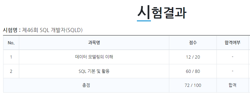 일주일 공부하고 SQLD 합격한 수기입니다.