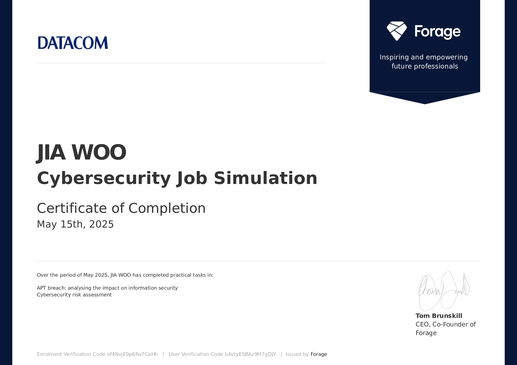 forage : DATACOM Cybersecurity Job Simulation
