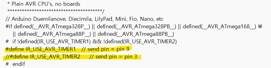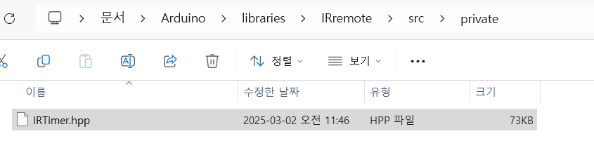 그래서 부저를 출력하고 나면 IR리모컨 신호를 왜곡해서 받는 문제가 발생한다. IR리모컨을 타이머1 인터럽트로 수정해 해결했다.라이브러리의 IRTimer.hpp를 수정한다.