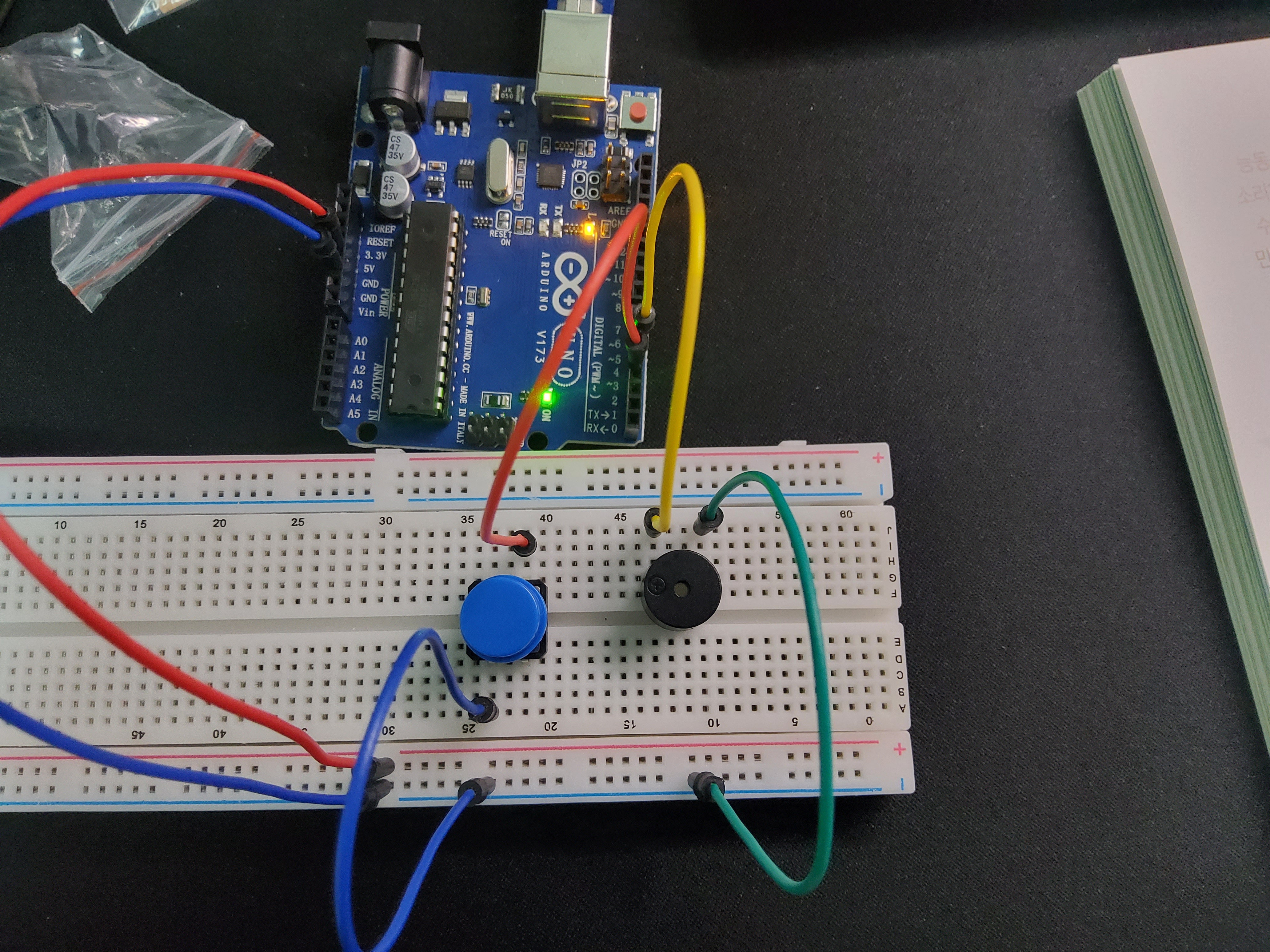 능동 버저는 내부에 내장된 회로가 있어서 전원을 연결하기만 해도 소리가 남.
