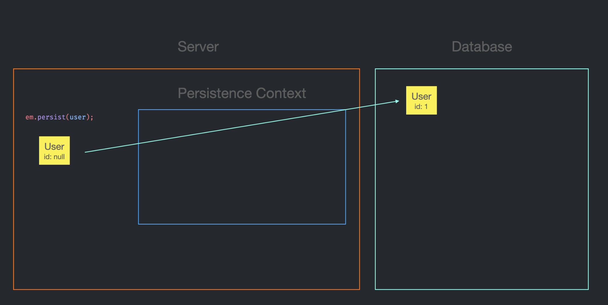 id가 null인 User Entity를 생성하고, em.persist를 호출한다.
