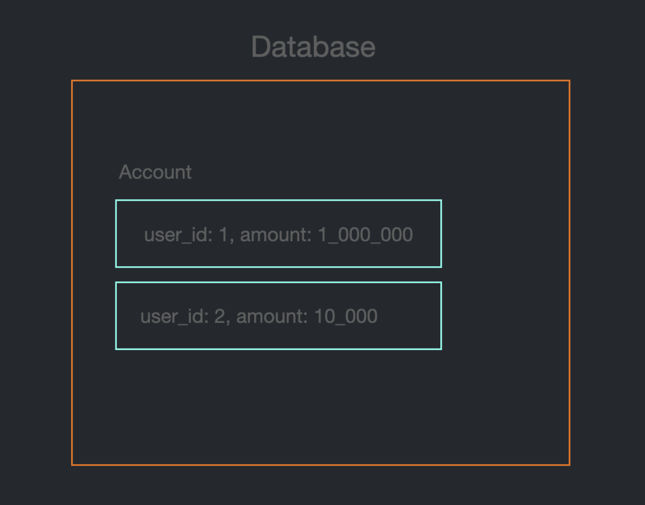 Database에 2개의 Account(은행 계좌)가 저장되어 있다.
