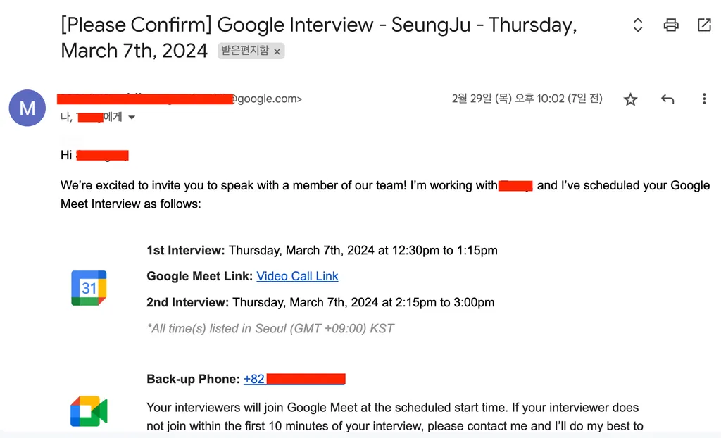 설마 진짜 내가 구글 면접을 보나…?? 이왜진?