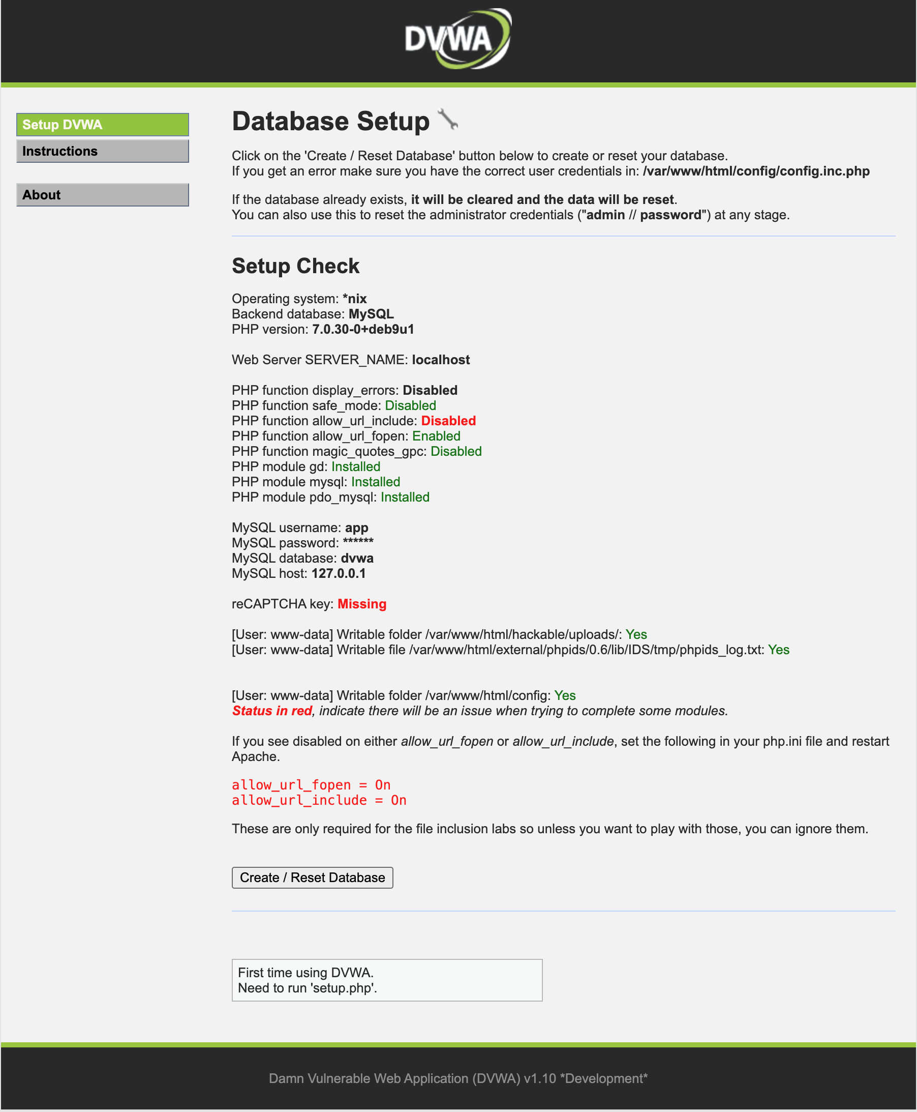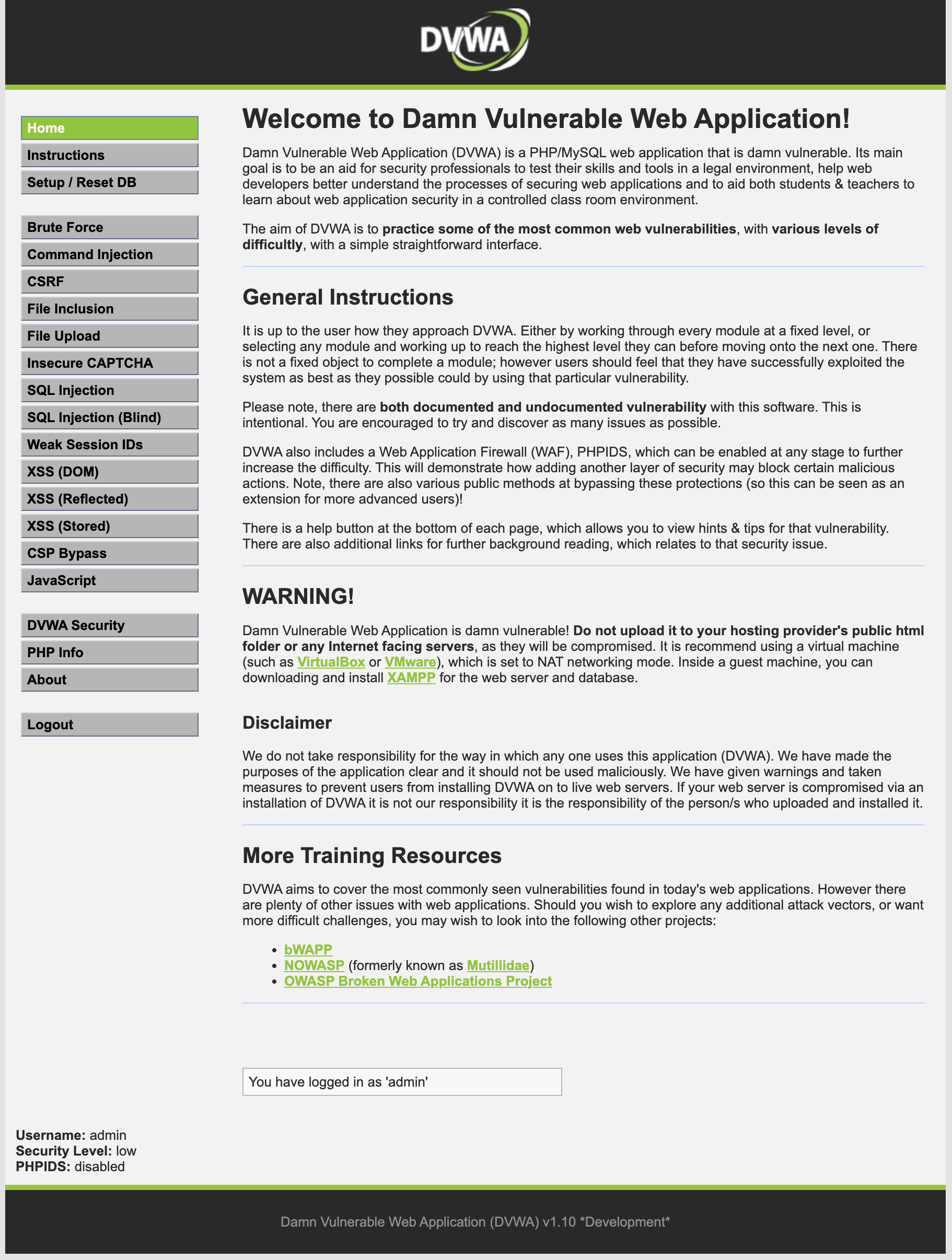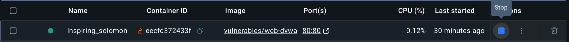 $ docker run -d -p 80:80 vulnerables/web-dvwa