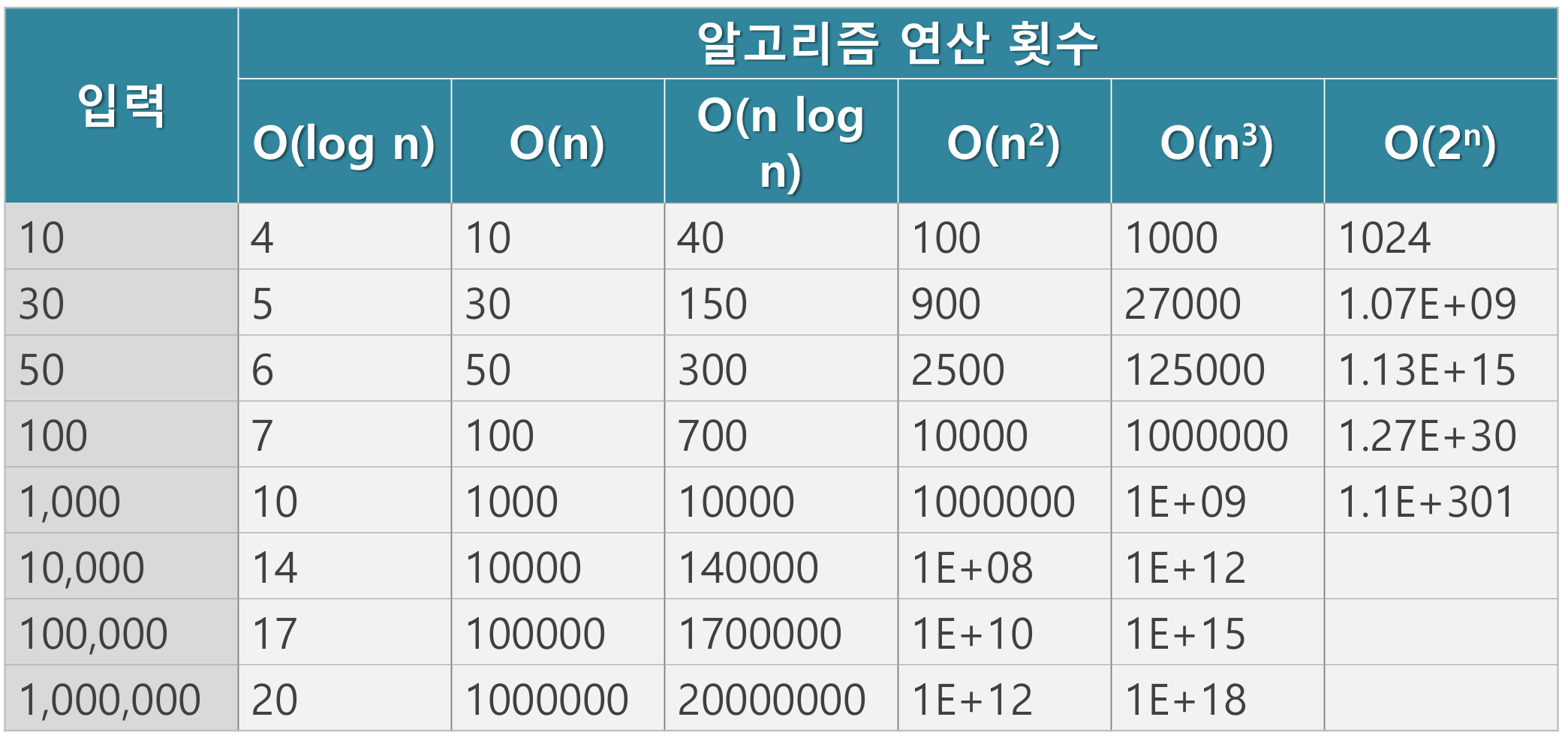 | 알고리즘2 | 데이터개수 → 관계없이 시간 동일 ✅ |