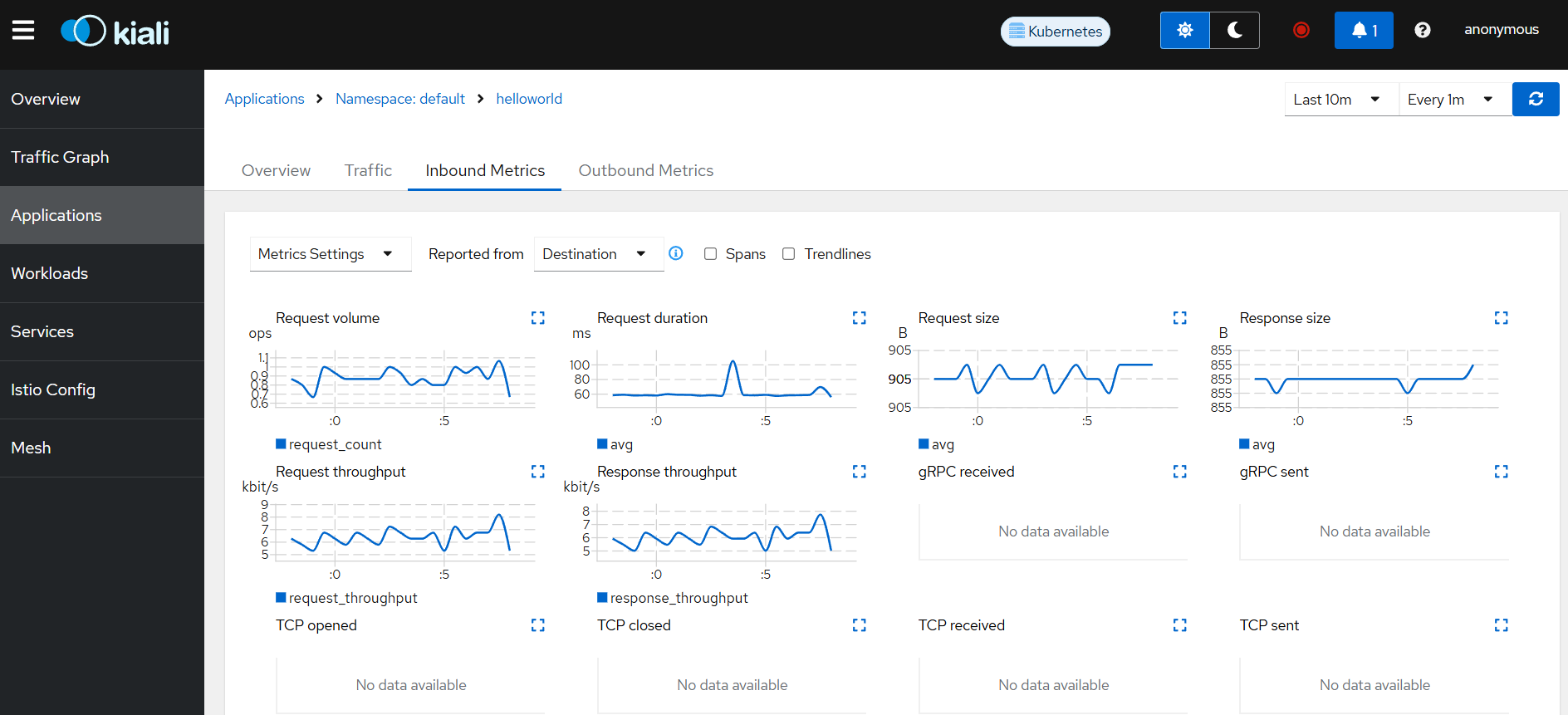 이 상태에서 Kiali 를 확인하면 그래프는 보이지 않는다.