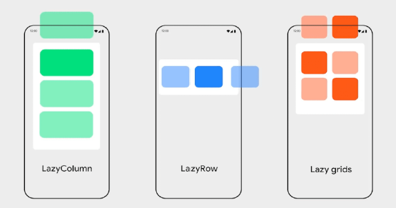 - LazyRow, LazyColumn, LazyVerticalGrid, LazyHorizontalGrid