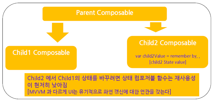 - 앱 개발 시 UDF 접근 방식은 부모 컴포저블의 상탯값을 자식 컴포저블