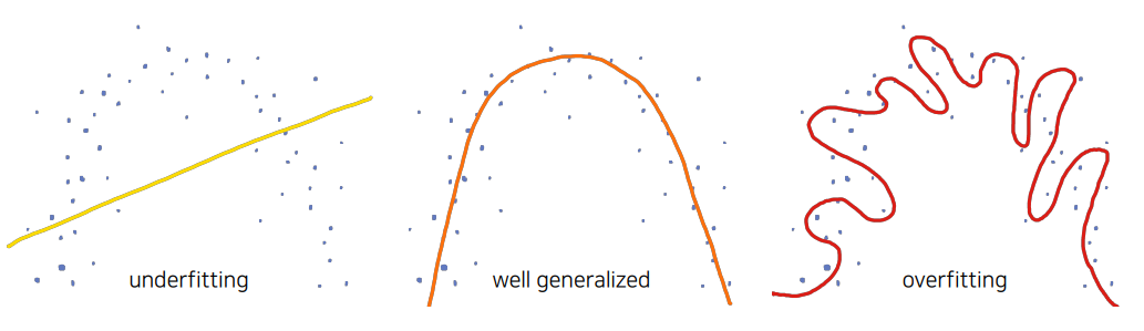 | Well-generalized | ํ์ต ๋ฐ์ดํฐ์ ์๋ก์ด ๋ฐ์ดํฐ ๋ชจ๋์์ ์ข์ ์ฑ๋ฅ |