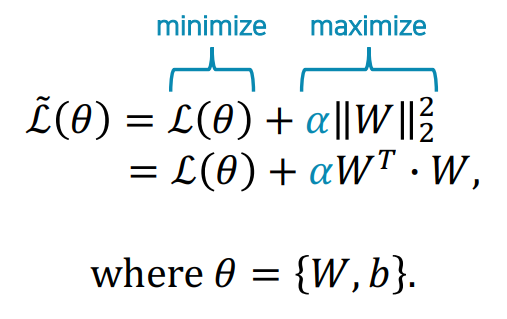 L(ฮธ)=Loriginalโ(ฮธ)+ฮฑโโฃโฃWโฃโฃยฒ