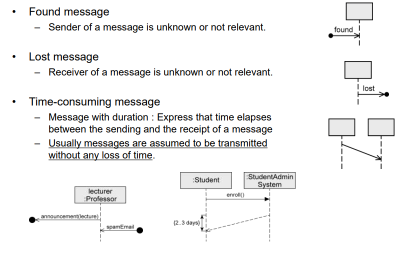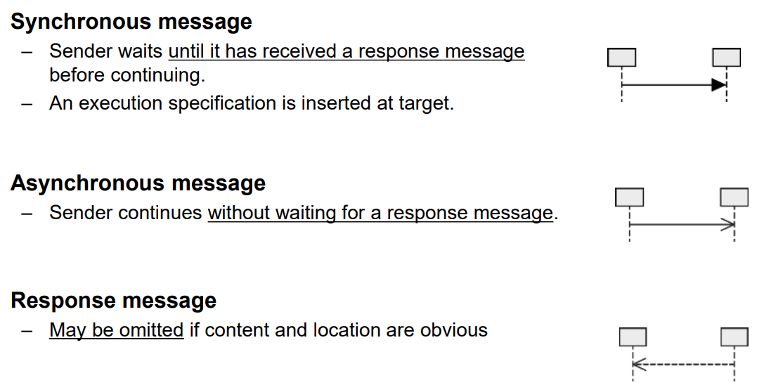 - 3가지 유형을 가짐 (주로 Synchoronuous message와 Response message 사용, Thread일 때만 Asynchronous !)
