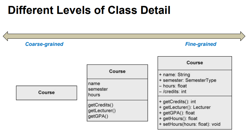 - 너무 많은 getter와 setter가 생길 수 있으므로, 종종 클래스 다이어그램에서는 필터링하여 표시함.