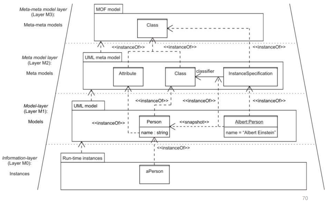 UML은 MOF(Meta-Object Facility)를 기반으로 한 4계층 메타모델 구조를 갖고 있다.