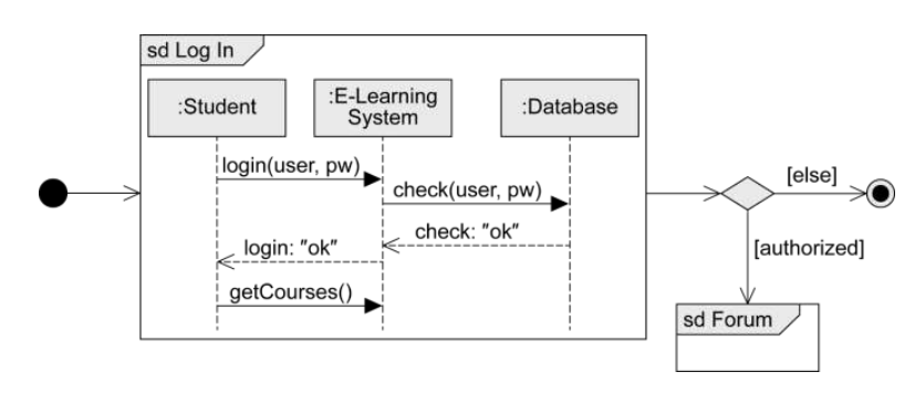 - 액티비티 다이어그램의 변형으로, 각 노드가 상호작용 또는 상호작용 발생(Interaction Occurrence)을 나타냄
