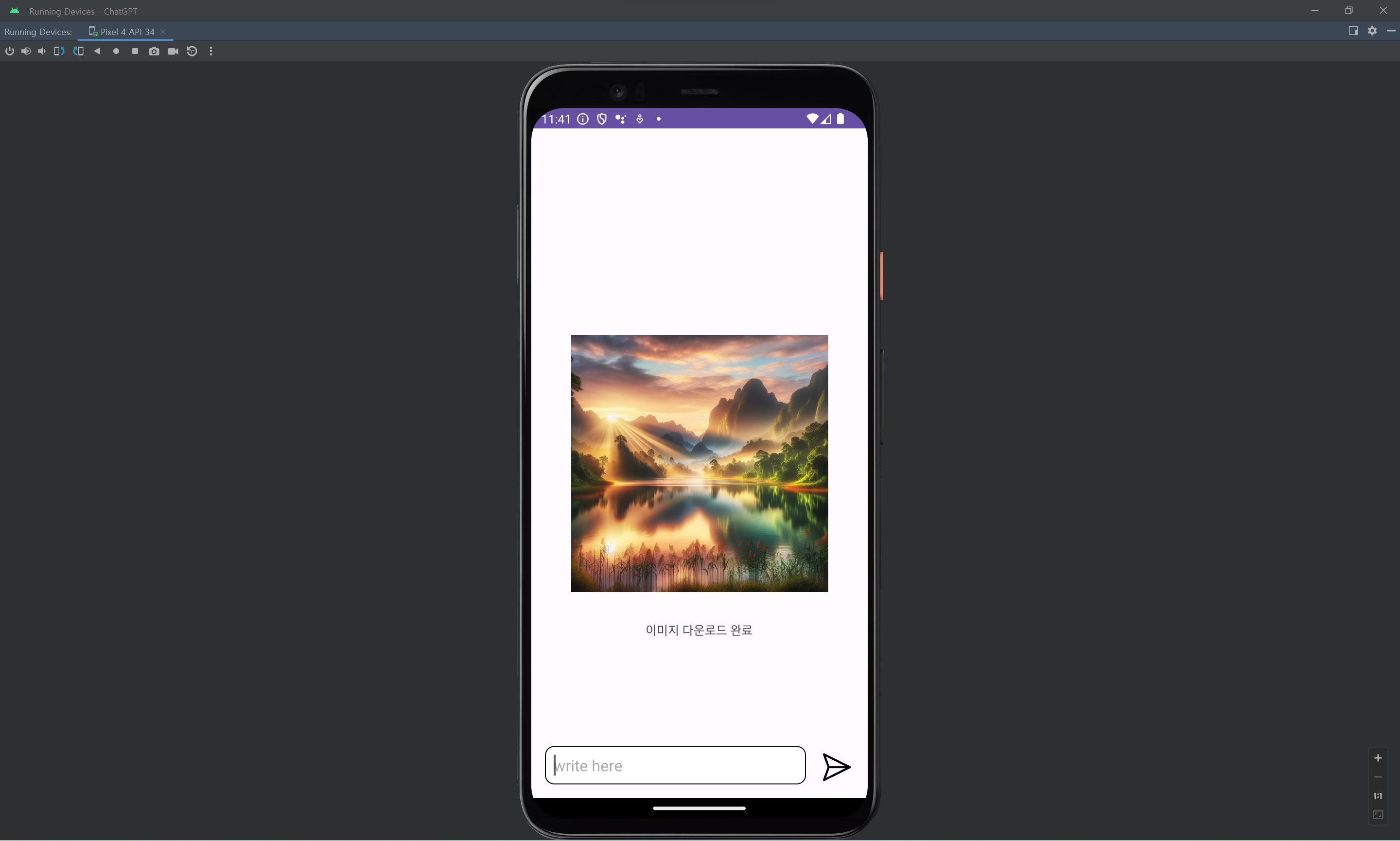dall-e-3는 생성된 이미지를 url 형태로 전달하기 때문에, 전달받은 json으로부터 url을 추출하고, 이를 ImageView에 띄우면 성공적으로 앱의 사용자에게 이미지가 보여지게 된다.