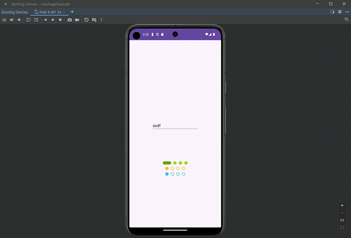 필자는 viewpager2와 dotsindicator를 사용하여 좌우로, 한페이지 단위로 스와이프 됨과 동시에 진행도를 확인할 수 있는 fragment 형식을 구현하고자 한다.