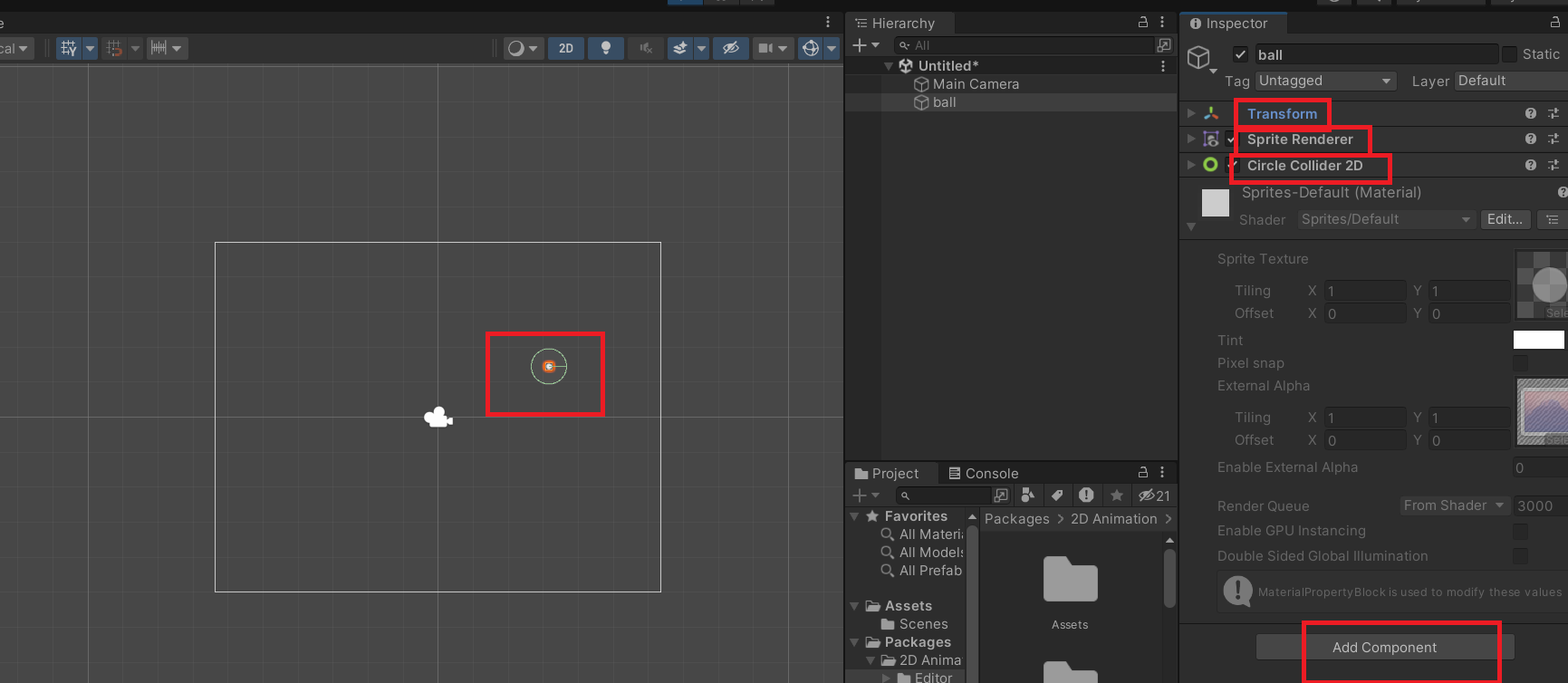 Rigidbody 2D : Rigidbody는 한국말로 강체. 즉, 고체라는 뜻이다. 중력을 받아서 밑으로 떨어지게 하는 역할을 하게 해준다. 중력만 작용하는 것이 아니라 물리법칙들을 game object에 준다.