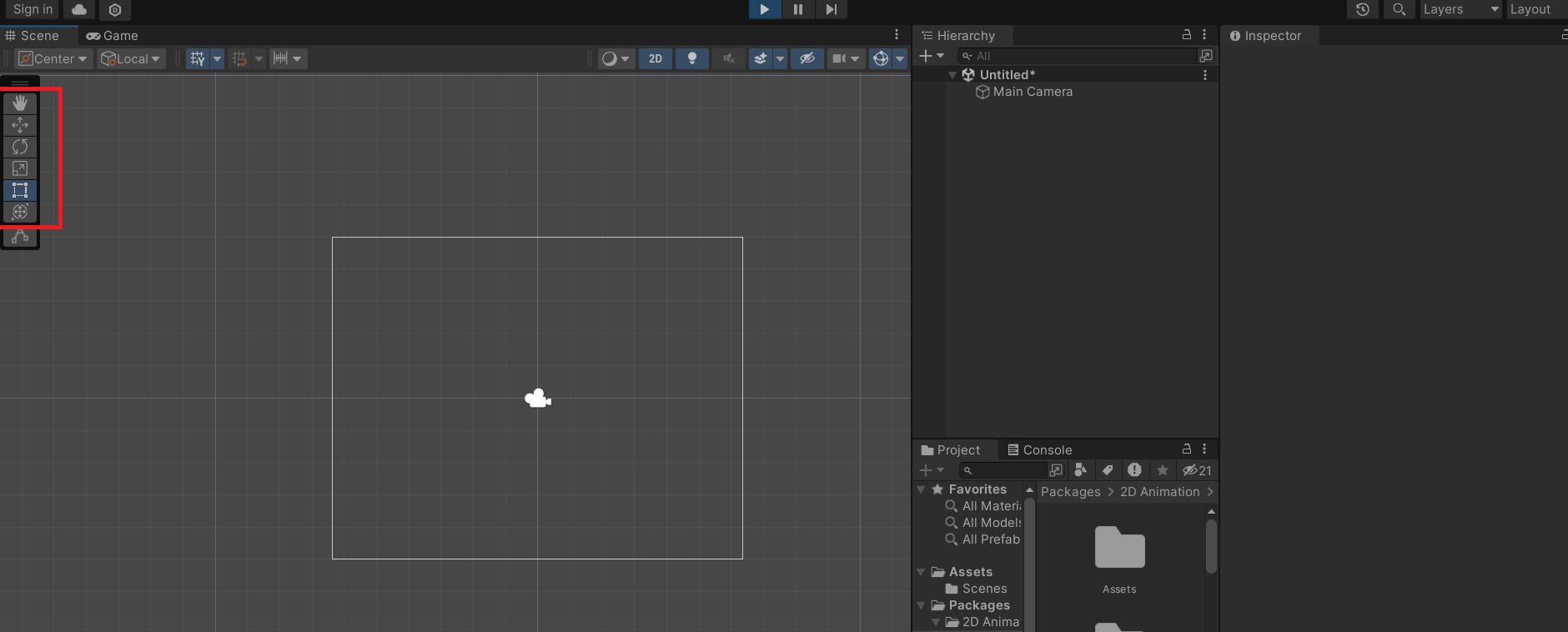 Move tool(이동툴) : game object를 직접 움직인다. 두개의 축을 기준으로 움직이게 해준다. 축으로 움직이는 것을 원하지 않다면, 가운데 네모 버튼을 잡고 눌러 드래그하면 자유롭게 움직일 수 있다.