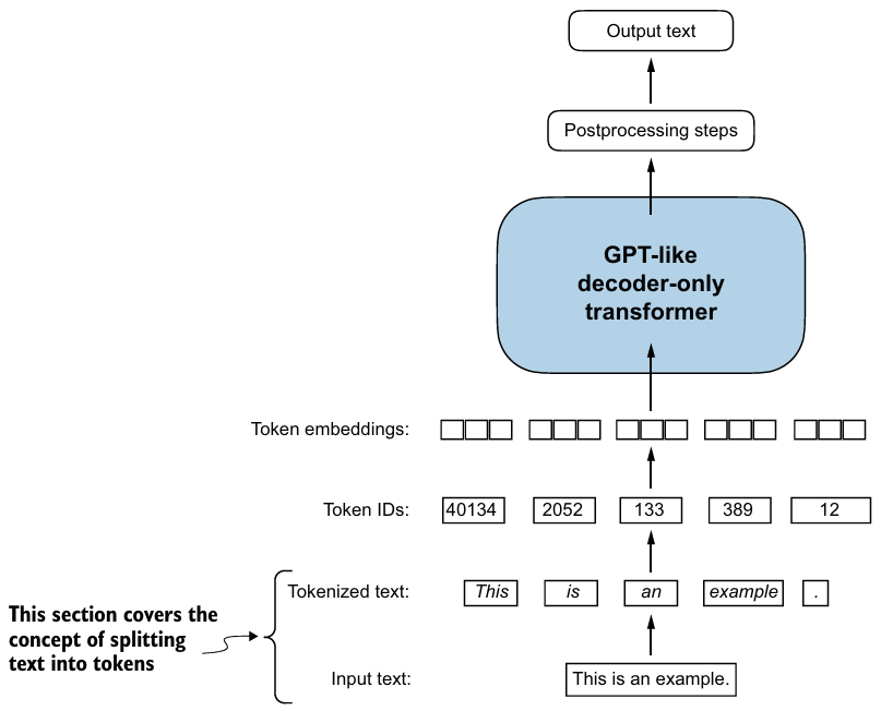 set() 사용)로 vocabulary을 만든다.encode()는 input 텍스트를 토큰 IDs 리스트로 변환하고, decode()는 반대 과정을 수행한다.몇몇 토크나이저는 추가적인 맥락을 LLM에 적용하기 위해 특별한 토큰을 사용한다.