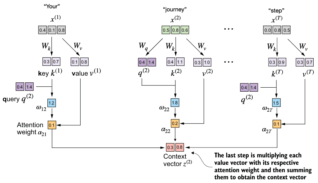 attn_scores = queries @ keys.transpose(2, 3) # Dot product for each head