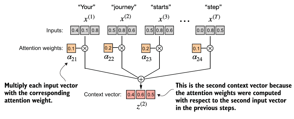 torch.softmax()를 이용한다.attn_weights_2 = torch.softmax(attn_scores_2, dim=0)