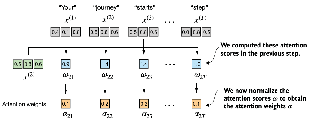 attn_weights = torch.softmax(attn_scores, dim=-1)