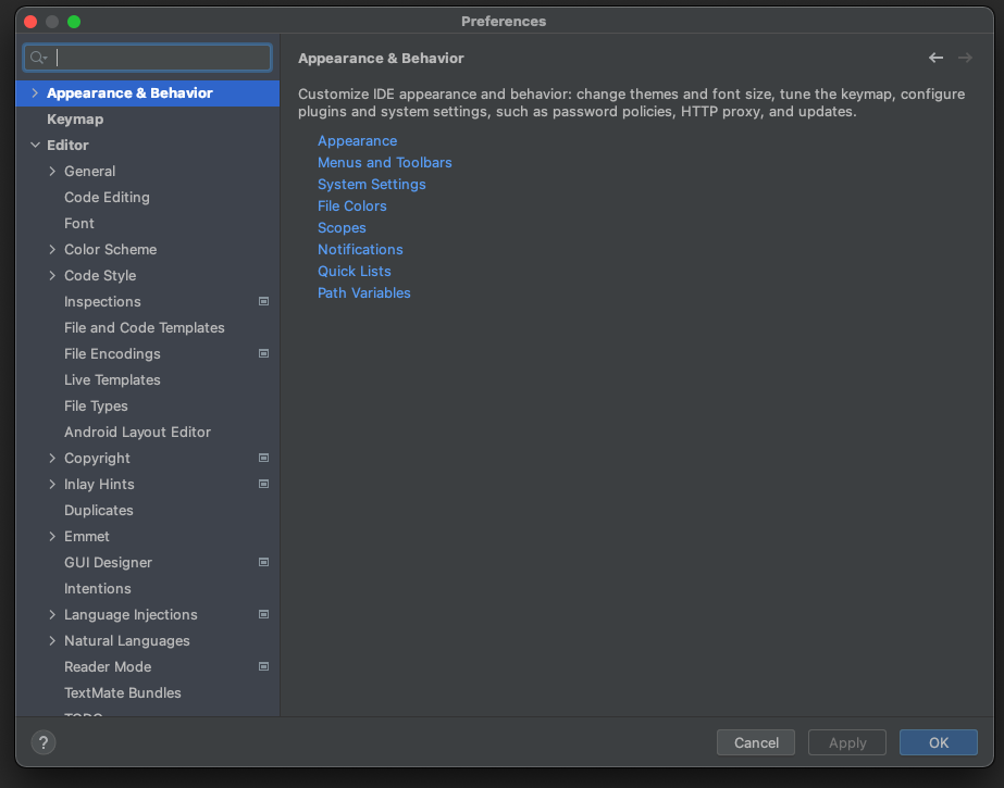 - 환경설정에 들어간다.(mac : cmd + ,)