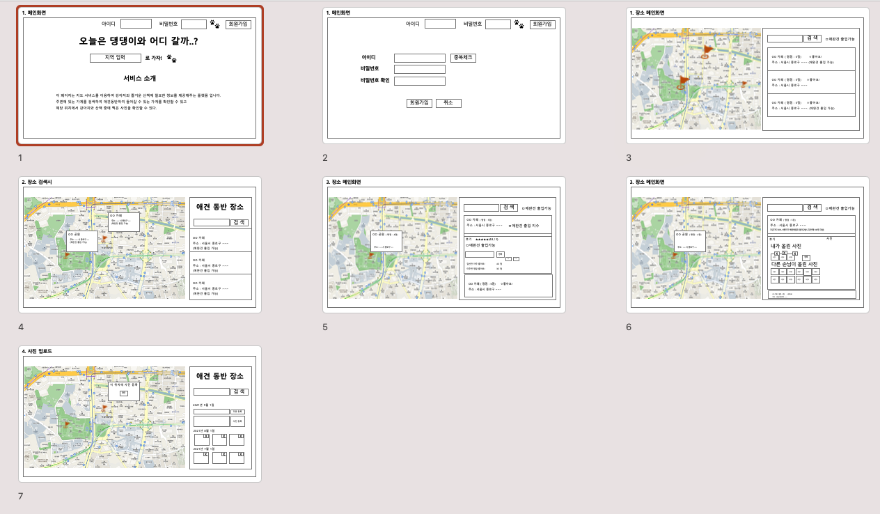 화면이 많기 때문에 하나만 화면을 올리지만 실제로 프로토타이핑툴을 쓰니 깔끔하게 화면이 나온 것을 확인할 수 있다.