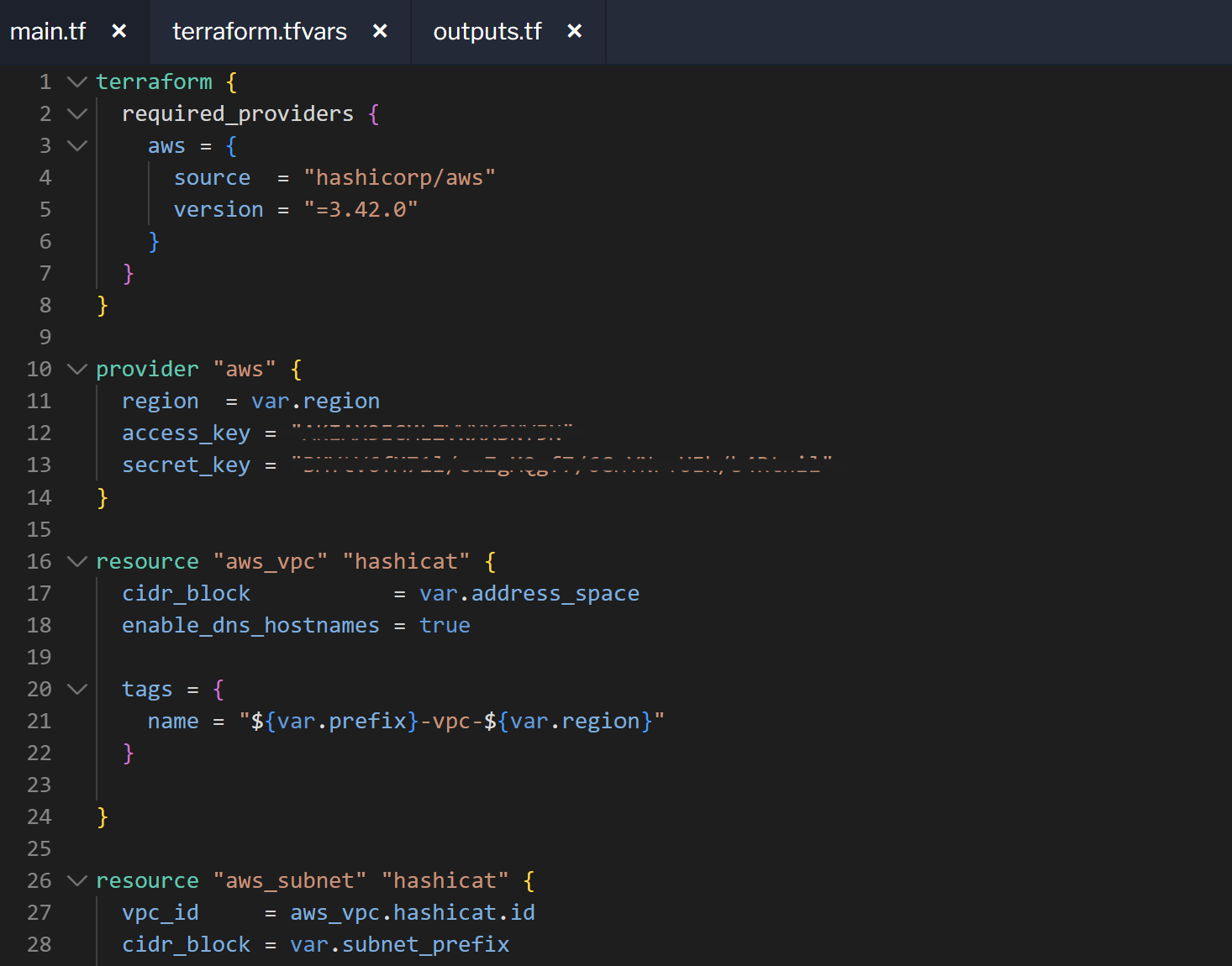 main.tf에 액세스키를 작성하여 AWS와 테라폼이 통신 되도록 함
