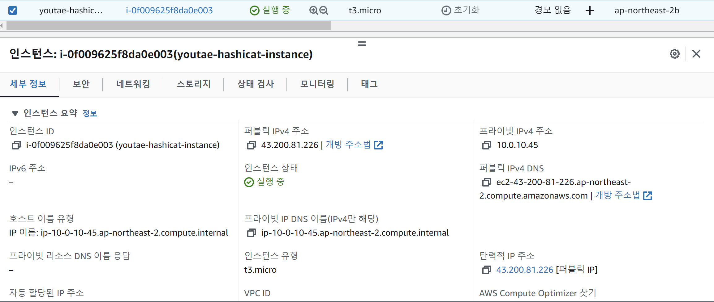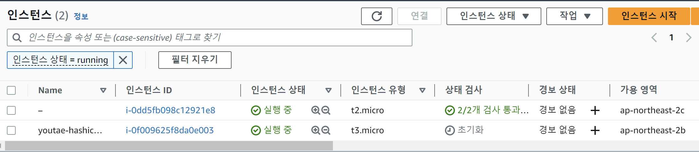 인스턴스가 잘 생성된 모습