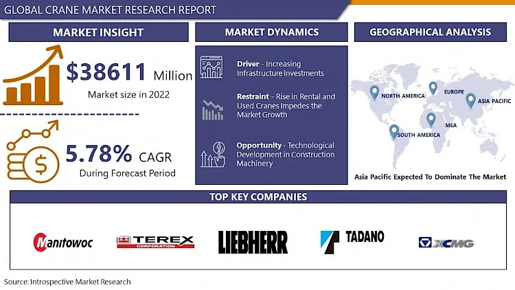 Crane Market Size Was Valued at USD 38611 Million in 2022, and is Projected to Reach USD 57704 Million by 2030, Growing at a CAGR of 5.78% From 2023-2030.