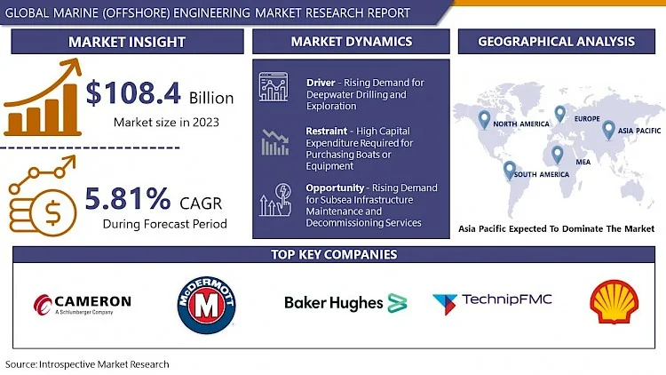 Global Marine (Offshore) Engineering Market Size Was Valued at USD 108.4 Billion in 2023 and is Projected to Reach USD 180.21 Billion by 2032, Growing at a CAGR of 5.81% From 2024-2032.