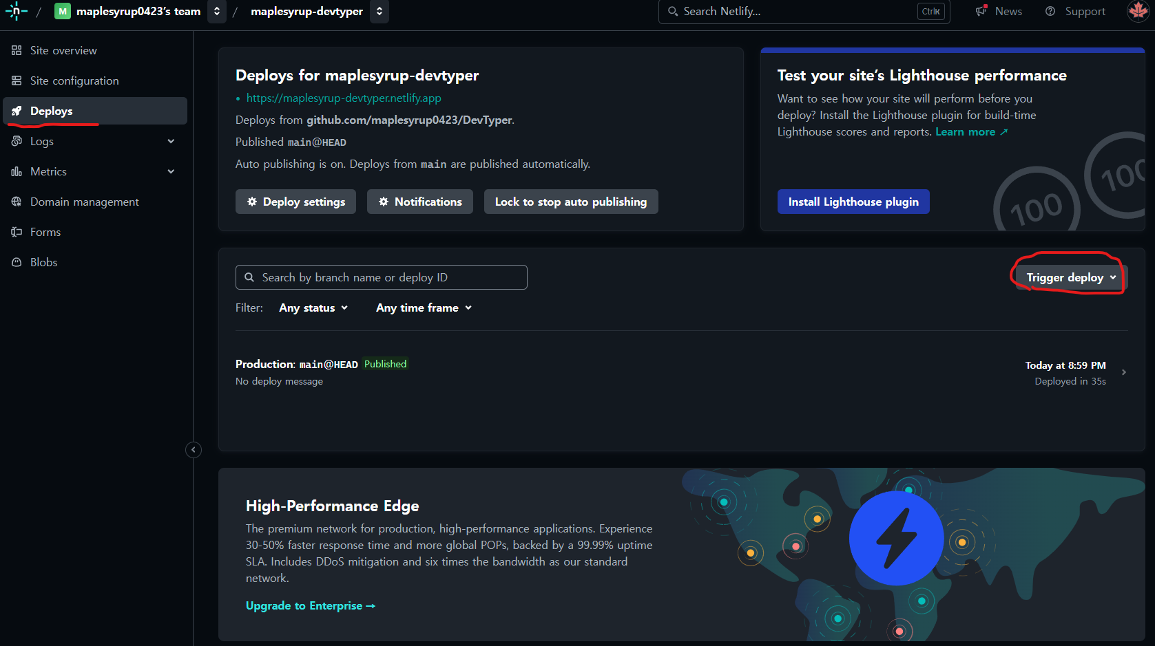 - Netlify에 로그인한 후, 배포된 사이트의 대시보드로 이동합니다.