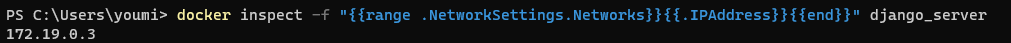 docker inspect -f '{{range .NetworkSettings.Networks}}{{.IPAddress}}{{end}}' [컨테이너명 또는 컨테이너ID]