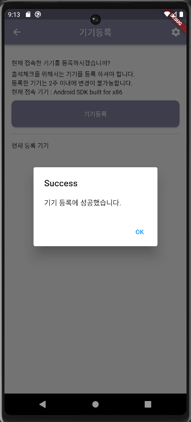 하지만 또 다른 문제가 있습니다. 기기 등록을 완료한 후 다시 기기등록 버튼을 눌렀을 때는 한 사람이 중복으로 기기를 저장하려는 것이기 때문에 기기 등록을 성공해서는 안됩니다. 하지만, 계속 성공 showlog가 뜨는 문제가 발생했습니다.