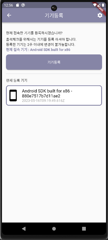 "출석체크를 위해서는 기기를 등록 하셔야 합니다.\n등록한 기기는 2주 이내에 변경이 불가능합니다."),