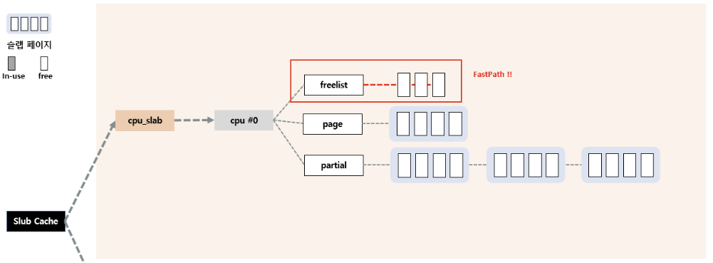 percpu의 freelist에 들어있는 free object를 바로 할당해주는 방식으로, 제일 빠르다.