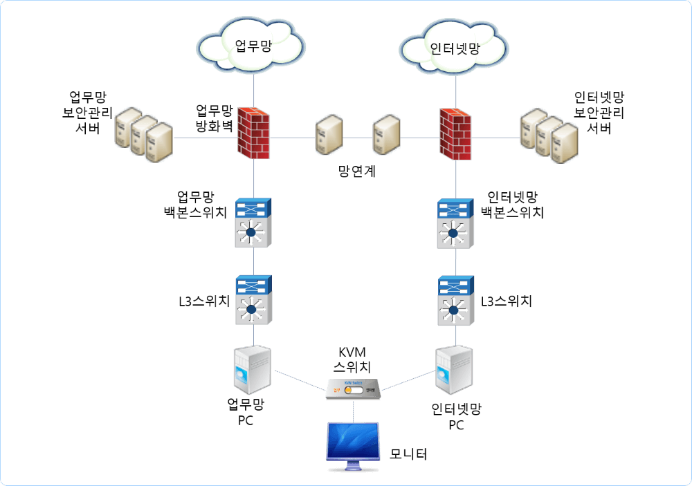 kvm (keyboard, video, mouse) 스위치로 업무망, 인터넷망 전환 가능