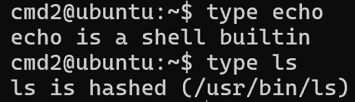 echo는 shell 내부에 내장된 (builtin) 상태로도 존재하고, ls는 그렇지 않았다.