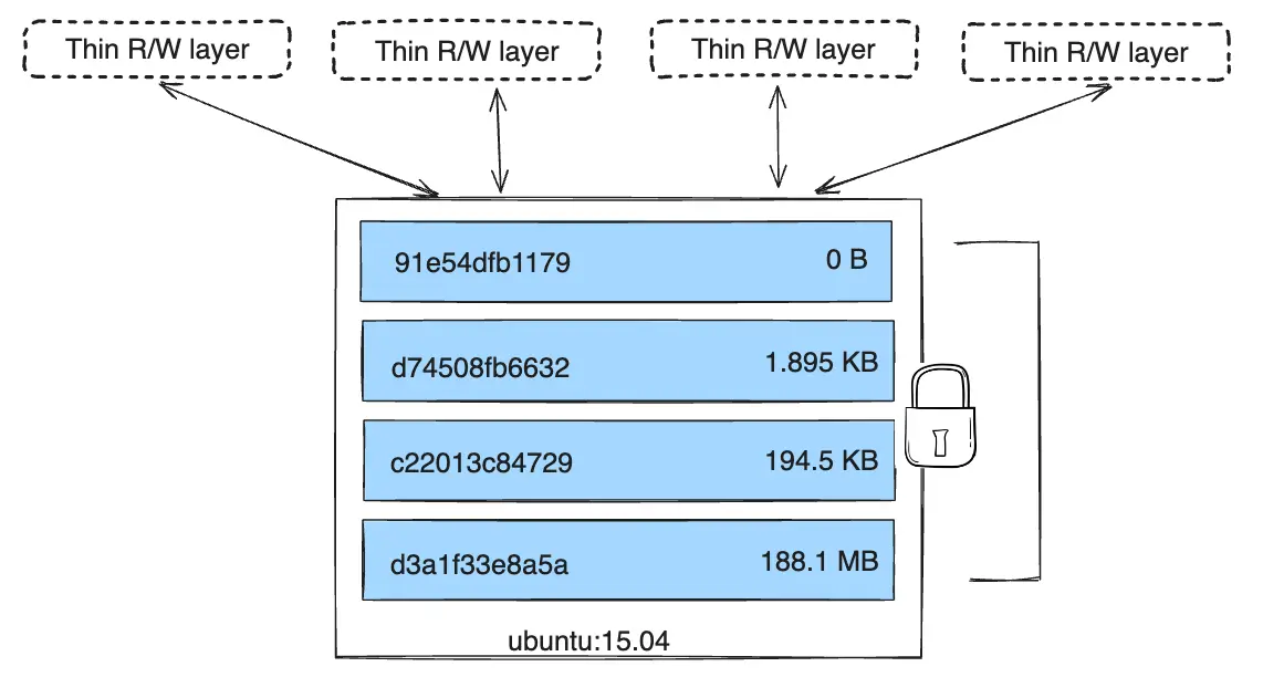 ๋์ปค ์ด๋ฏธ์ง๋ ์ฌ๋ฌ ๊ฐ์ ์ฝ๊ธฐ ์ ์ฉ ๋ ์ด์ด๋ก ๊ตฌ์ฑ๋์ด ์์ต๋๋ค. ๊ฐ ๋ ์ด์ด๋ ์ด์ ๋ ์ด์ด์ ๋ํ ๋ณ๊ฒฝ์ฌํญ๋ง์ ํฌํจํ๋ ์ฆ๋ถ(incremental) ๊ตฌ์กฐ๋ฅผ ๊ฐ์ง๋๋ค.