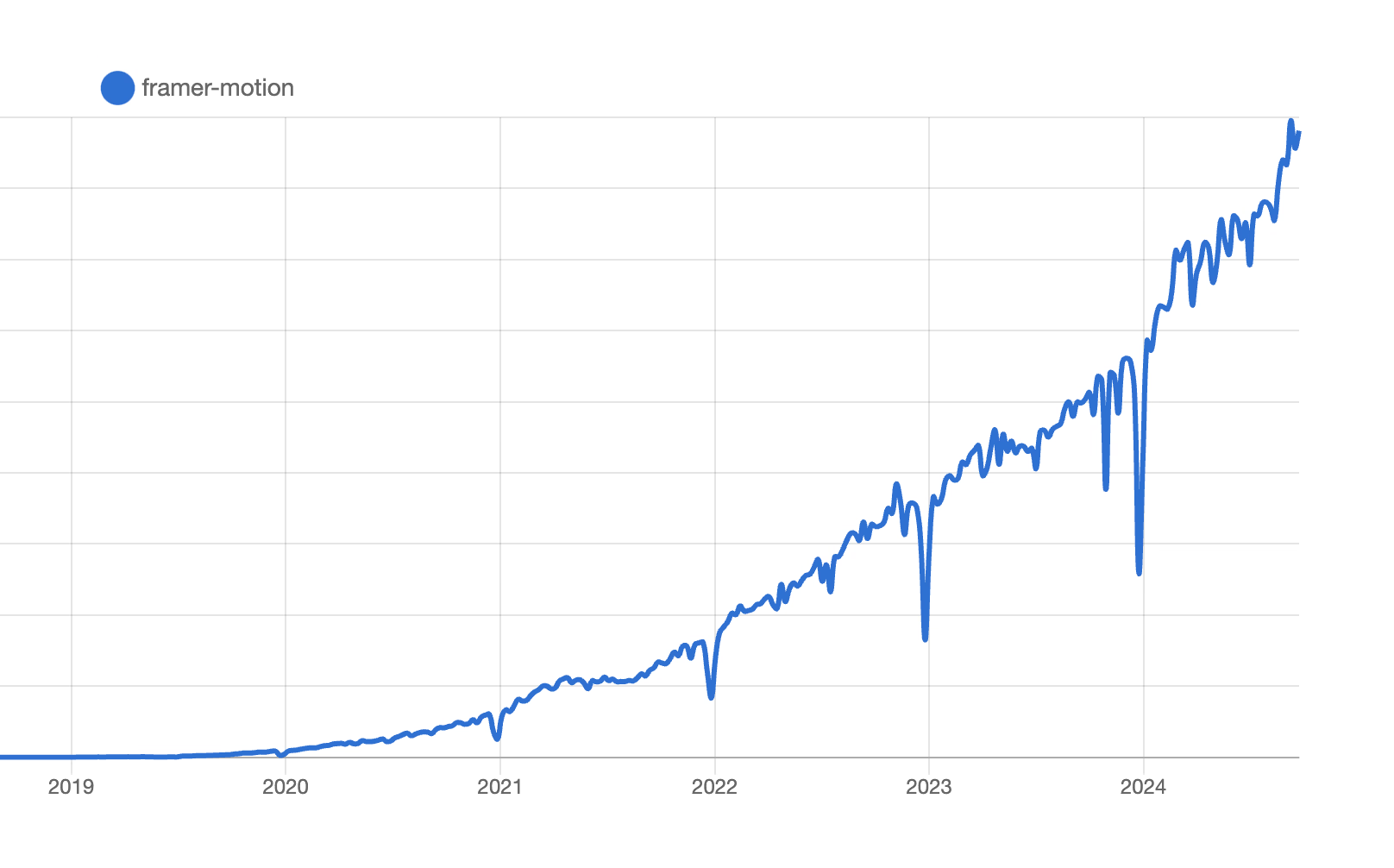 Framer-motion은 Framer의 성장과는 별개로 그 자체로도 많은 성장을 이뤄내며, React 애니메이션의 표준으로 자리매김했다.