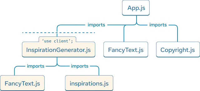 그리고 use client를 명시하는 것은 client boundary를 명시하는 것이다. dom render tree에서 어느 노드부터 client에서 렌더링할 지 경계를 나누는 것이다. use client가 포함된 컴포넌트와 해당 컴포넌트에 import된 컴포넌트, 자식들 모두 client에서 렌더링되게 된다.